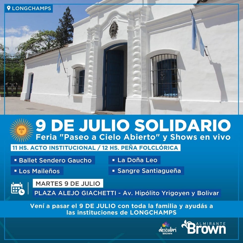 Este martes 9 de julio el Municipio de Almirante Brown celebrará el 208° Aniversario de la Declaración de la Independencia con un evento solidario y el correspondiente Acto Patrio en la localidad de Longchamps.