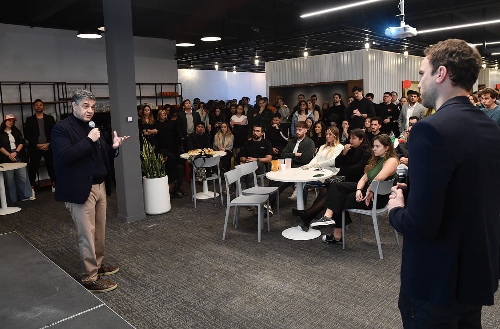 En las nuevas oficinas de la empresa Rappi en Saavedra, el jefe de Gobierno y la ministra de Cultura, Gabriela Ricardes, cerraron el convenio con directivos de la plataforma tecnológica que hará el envío a domicilio de los libros.