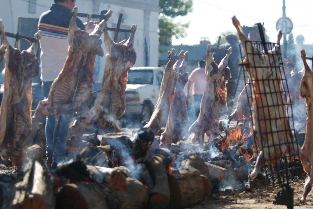 Asados con la tradicional vaca con cuero