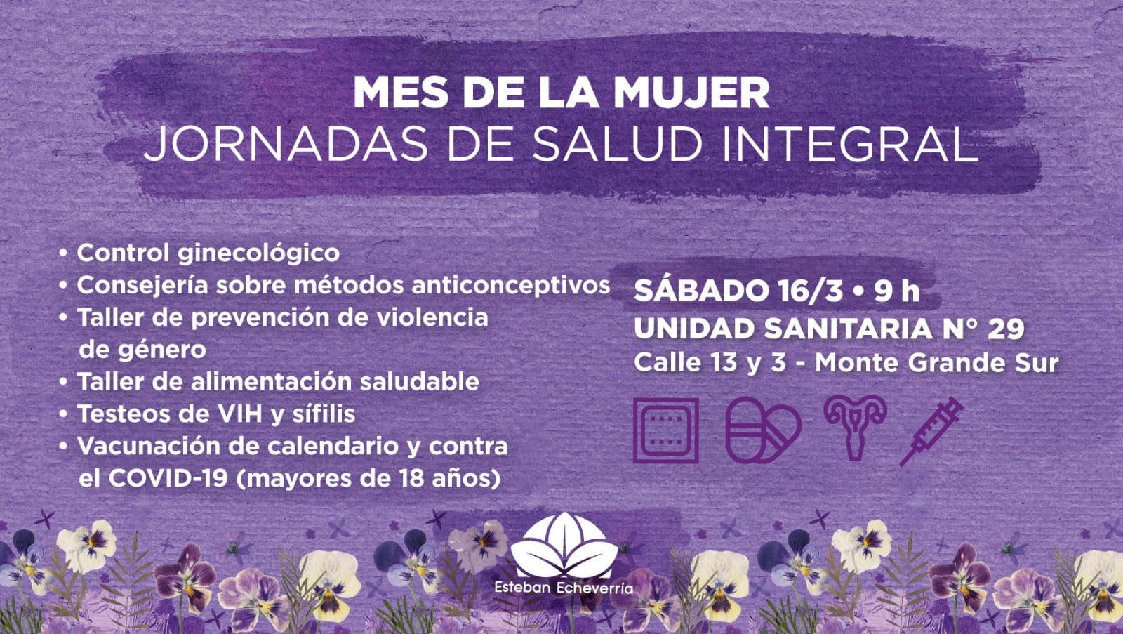 En el Mes de la Mujer, los sábados 16, 23 y 30 de marzo, y también el sábado 6 de abril, el Municipio de Esteban Echeverría continúa con las jornadas de salud integral en unidades sanitarias del distrito.