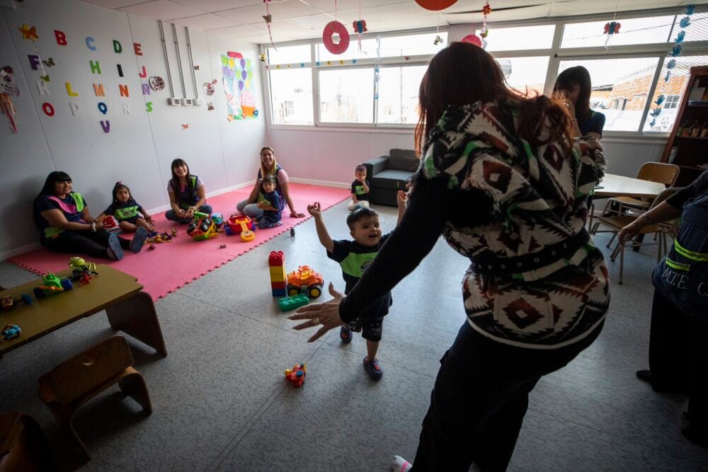 Más tarde concurrió al Centro infantil de Recreación y Aprendizaje “Construyendo Futuro”, de Villa Caraza, en Lanús, donde también mantuvo un intercambio directo con la gente.
