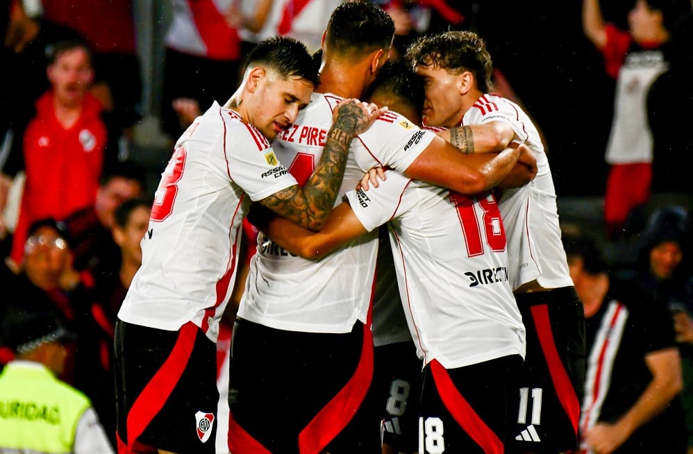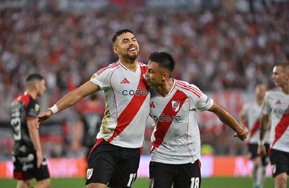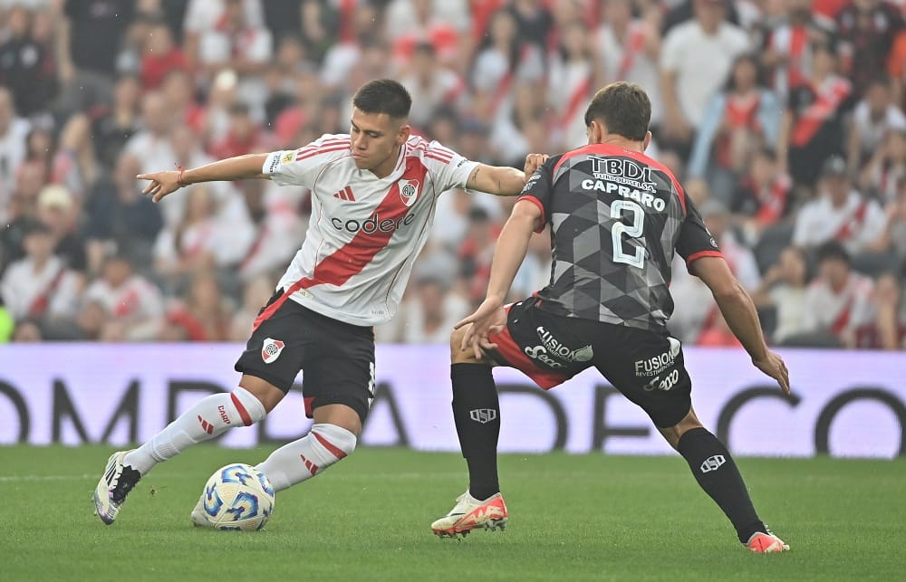 Pero para los 23 minutos del complemento, River se puso en ventaja después de un centro magistral de Franco Mastantuono que cayó dentro del área chica y directo a la cabeza de Meza para que el ex Independiente convirtiera en el primer palo el 1 a 0 del conjunto local ante un complicado rival.