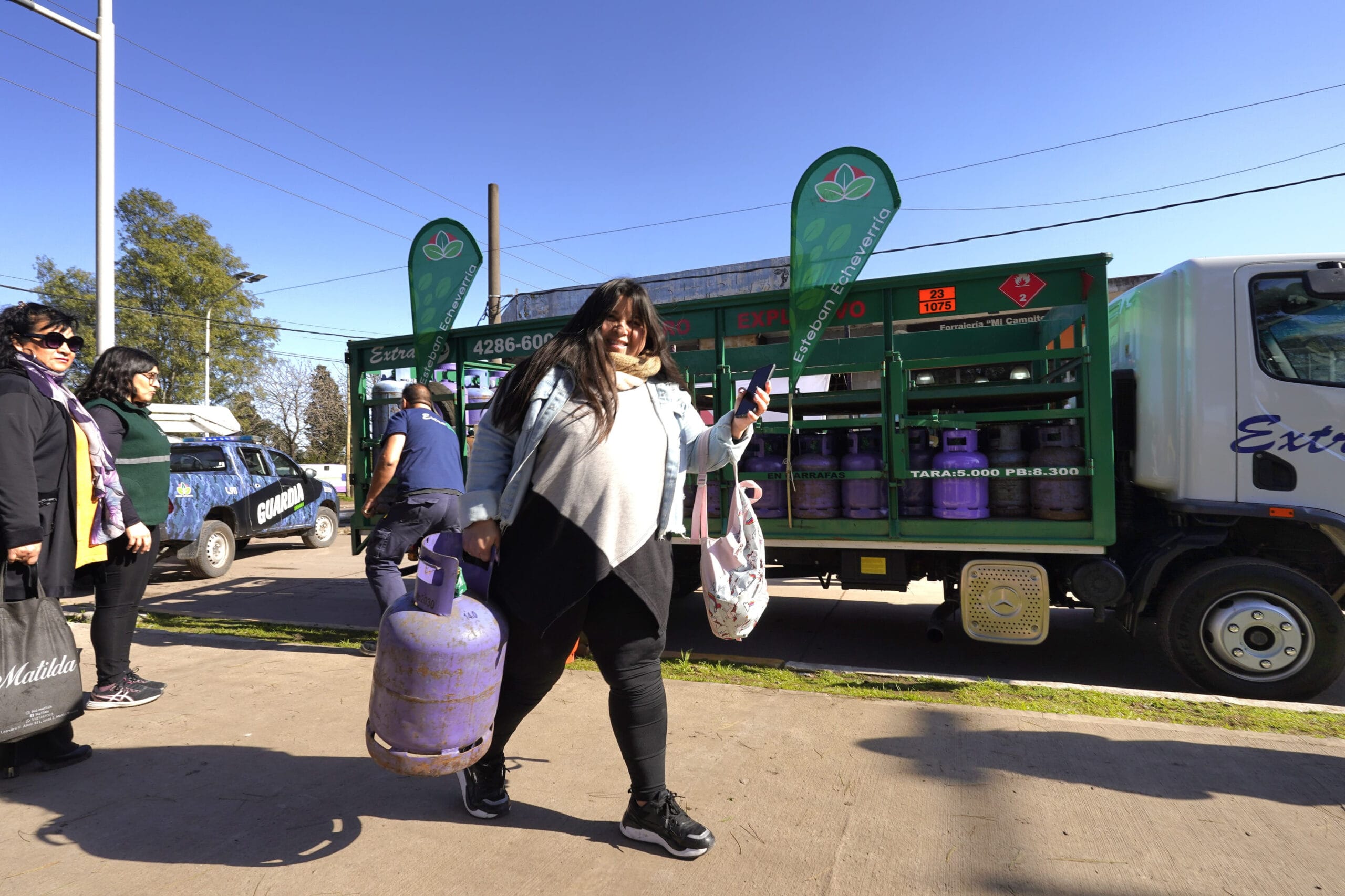El Municipio de Esteban Echeverría continúa con los operativos de recarga de garrafas a un precio social. El martes 3 de septiembre, las vecinas y los vecinos pudieron acceder a este beneficio en la plaza Sarmiento (L. N. Alem y Las Rosas, Monte Grande Sur).