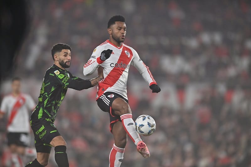 A los 42 minutos, River pudo romper la pared enorme que construyó Sarmiento en el fondo, con un bombazo de Mastantuono, y puso finalmente el 1 a 0 para el triunfo de River en el último partido de Demichelis.