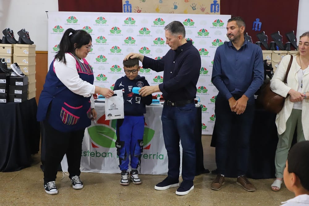 “Por etapas continuamos la entrega gratuita de lentes a estudiantes de las escuelas primarias de Esteban Echeverría. La salud visual es muy importante para que las personas puedan estudiar y desarrollar sus vidas”, expresó el intendente acompañado de la directora de la escuela, Cecilia Villarruel. Y agregó: “además, estamos entregando 28 mil zapatillas”.