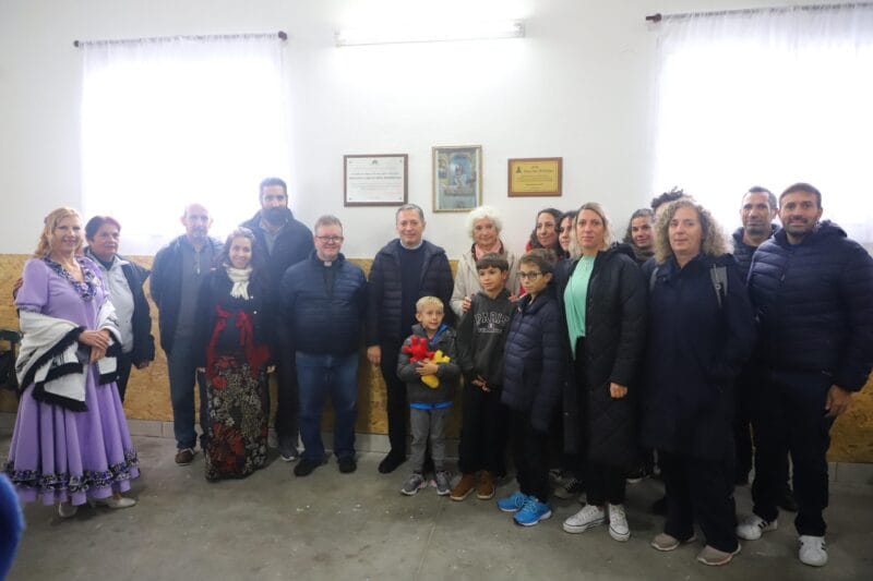 En el encuentro, el jefe comunal estuvo acompañado por el padre Federico Witzel y Gladys Fontaiña. También por hijas, hijos, nietas y nietos del diácono Carlos Abel Rodríguez, así como por su esposa, Beatriz Calvo. En la celebración descubrieron una placa conmemorativa con motivo de la imposición del nombre del diácono al salón principal de la institución.
