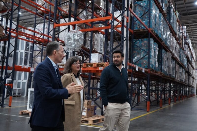 Durante el encuentro, el jefe comunal dialogó con Paula Fernández y Ramiro Serra, representantes de la compañía, acerca de la ampliación en 12.000 m² de los galpones del centro logístico a partir de su adhesión a Invertí en Esteban Echeverría.
