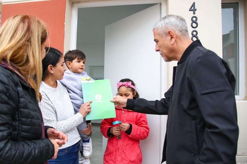 Acompañado de la jefa de Gabinete, Magdalena Sierra y el administrador general del Instituto de la Vivienda de la Provincia de Buenos Aires, Diego Menéndez, el jefe comunal les entregó las llaves de sus hogares de nueve familias del barrio, dándole así continuidad a un abordaje que ya les ha brindado soluciones habitacionales a cientas de familias del barrio.