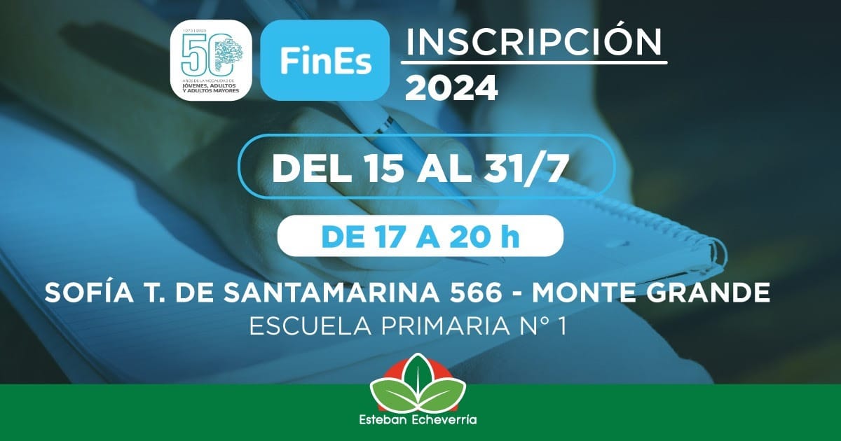 El Municipio de Esteban Echeverría avanza con la inscripción al Plan FinEs 2024 para personas mayores de 18 años. Esta iniciativa permite terminar los estudios secundarios o rendir materias adeudadas de forma presencial en sedes descentralizadas y en horarios flexibles.