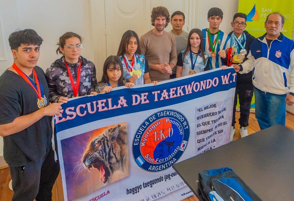 En línea con el apoyo del Municipio a la práctica de diversos deportes como posibilidad de integración y contención a través de su Dirección de Deporte, el Intendente Juan Andreotti recibió en el Palacio Municipal a jóvenes deportistas de la Asociación de Taekwondo WT y AMM de San Fernando que funciona en la Sociedad de Fomento Manuel Belgrano, que integran la Selección Nacional.