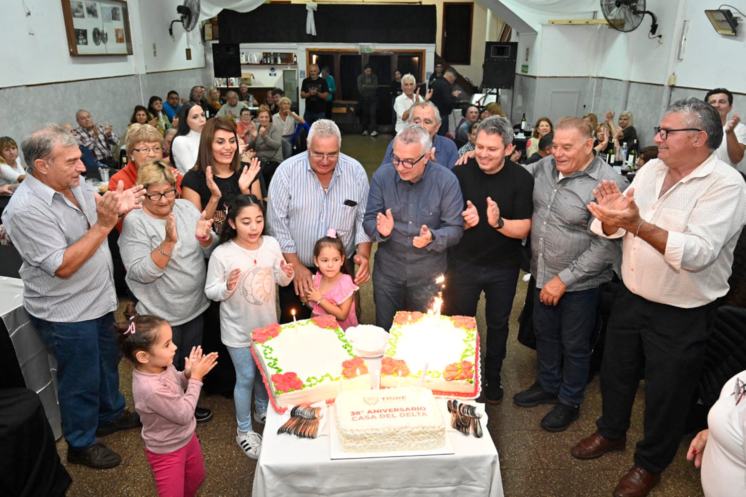 En el marco del 38° aniversario del Club Casa del Delta, el intendente de Tigre, Julio Zamora, acompañó a la comisión directiva, socios y socias en la celebración. Durante el evento, dialogó con los vecinos y vecinas sobre sus inquietudes y problemáticas.