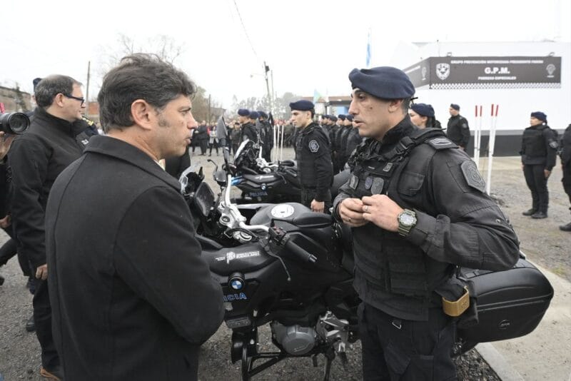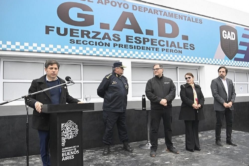 El gobernador de la provincia de Buenos Aires, Axel Kicillof, encabezó este martes en Guernica la inauguración de los destacamentos policiales de los grupos de Prevención Motorizada (GPM) y de Apoyo Departamental (GAD), junto al ministro de Seguridad, Javier Alonso; y la intendenta de Presidente Perón, Blanca Cantero. Además, entregó vehículos para las nuevas bases y puso en funcionamiento una ambulancia para fortalecer la gestión de emergencias en el municipio.