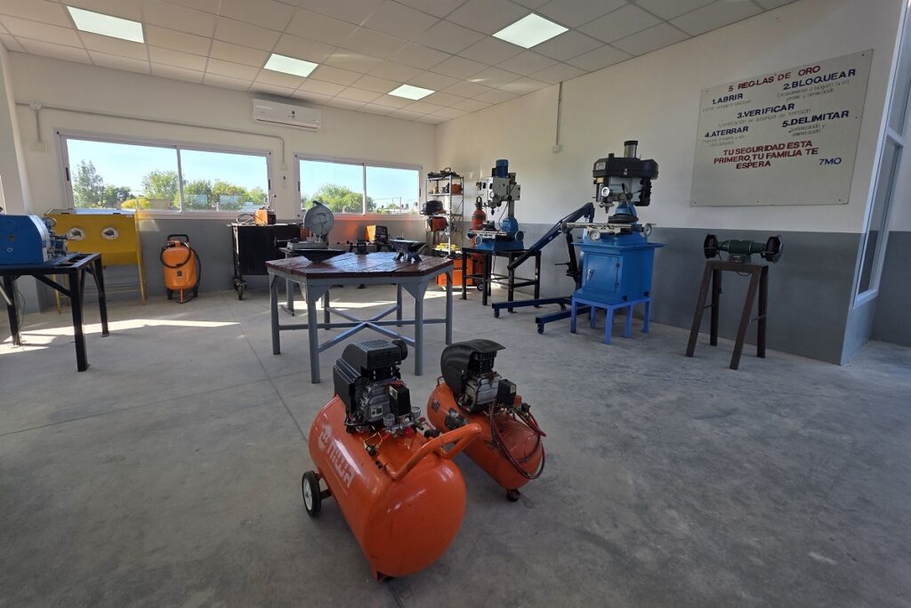 A partir de una inversión de $598 millones se construyó el nuevo edificio, ubicado en la localidad de Pérez Millán, al que asisten 180 alumnas y alumnas. La institución, especializada en electromecánica, cuenta con taller, SUM, salas para profesores y preceptoría.