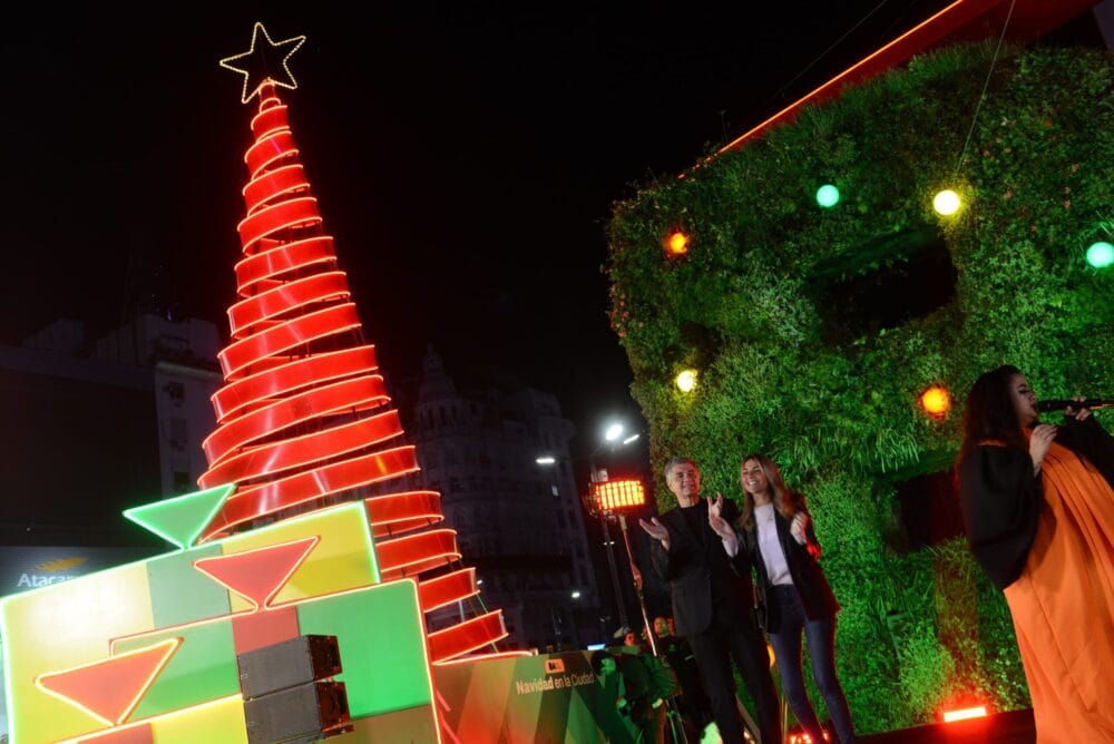 El encendido de luces del árbol de Navidad que está en la Plaza de la República marcó el inicio de los festejos, que incluirán también un circuito de 12.500 metros de figuras lumínicas con formas de estrellas, pinos, ángeles en plazas, avenidas y lugares icónicos de la Ciudad.