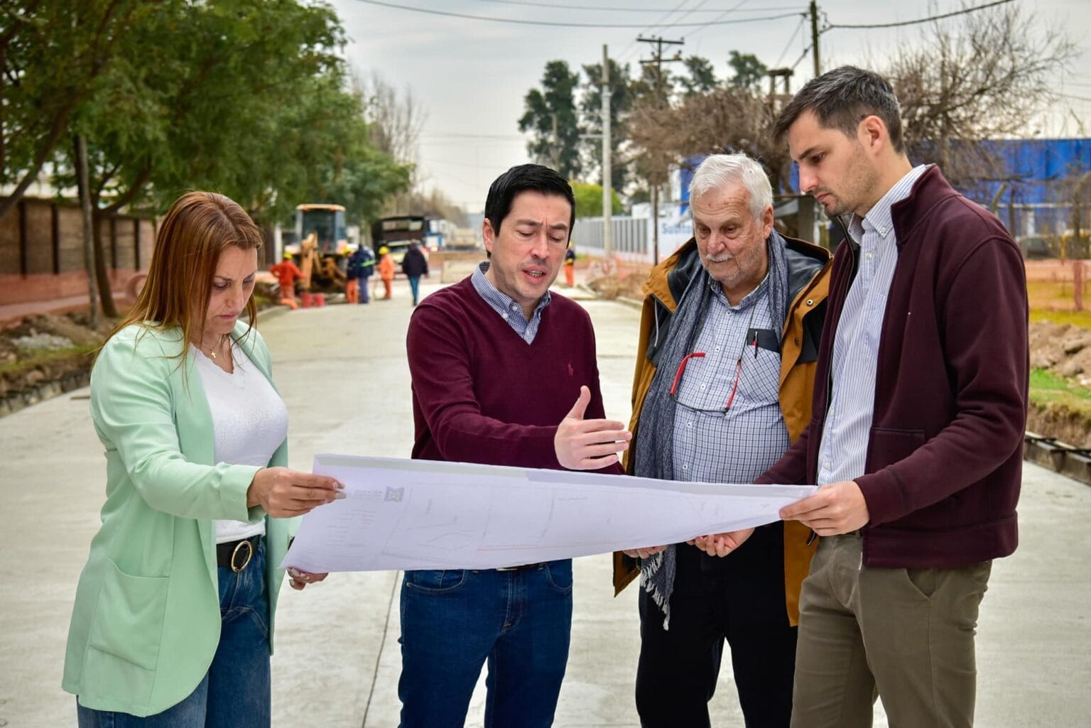 El intendente de Malvinas Argentinas, Leo Nardini, visitó la obra de pavimentación de hormigón para tránsito pesado con obra hidráulica de la calle Stephenson entre Estados Unidos y Costa Rica. Una arteria que el Municipio de Malvinas Argentinas realiza en conjunto gracias a un convenio firmado con ocho empresas del Área de Promoción Industrial El Triángulo.