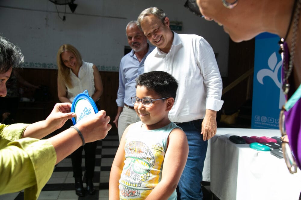 Allí, el jefe comunal browniano hizo entrega de los lentes a niños y niñas de primero, tercero, cuarto y quinto grado, pertenecientes a las escuelas primarias N°3, N°56, N°28, N°59, N°13, N°39, N°77, N°19, N°20, N°50, N°52 y N°55.