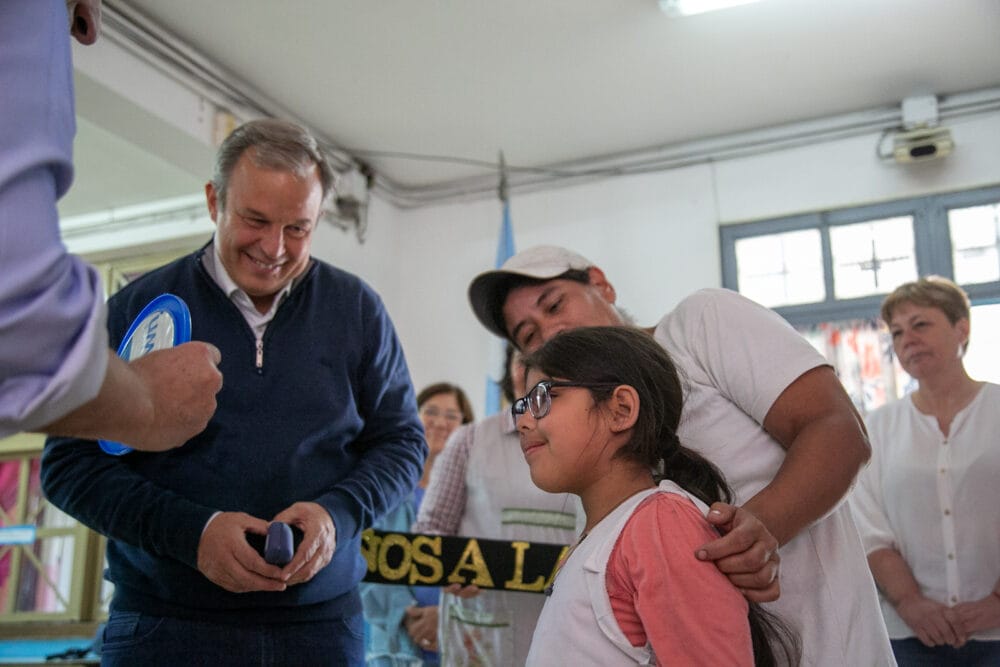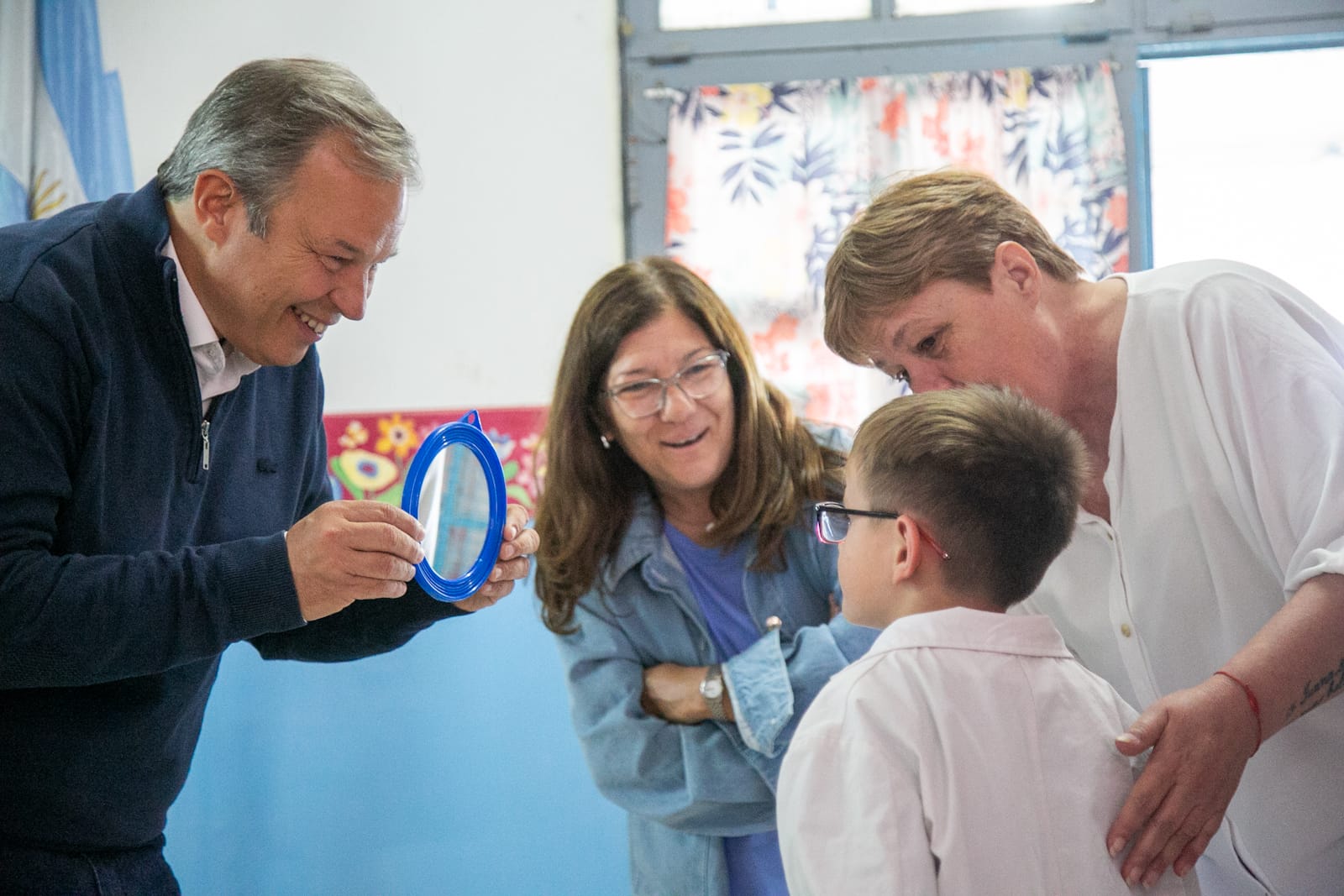 La jornada se llevó adelante en el establecimiento ubicado entre las calles Trojkovich y Leopoldo Marechal, donde el jefe comunal y la directora del lugar, Marta Amalio, entregaron lentes a niños y niñas de primer grado.