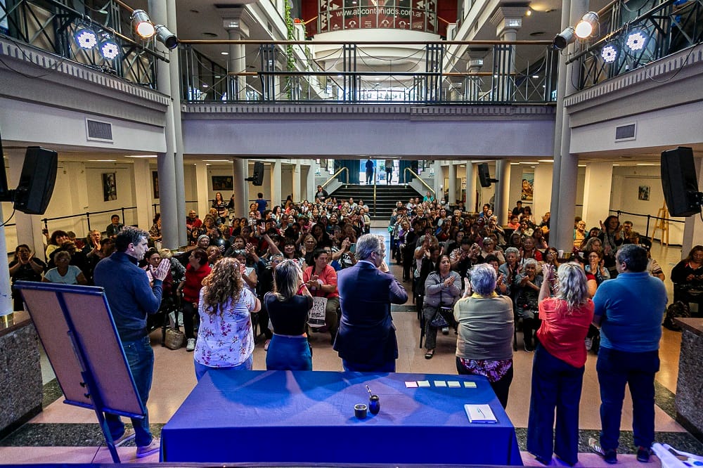El intendente de Almirante Brown, Mariano Cascallares, junto a la subsecretaria de Formación y Desarrollo Profesional del Ministerio de Seguridad bonaerense, María Ernestina Alonso, pusieron en marcha una capacitación destinada a potenciar la labor de las trabajadoras vecinales en los barrios de nuestro distrito.