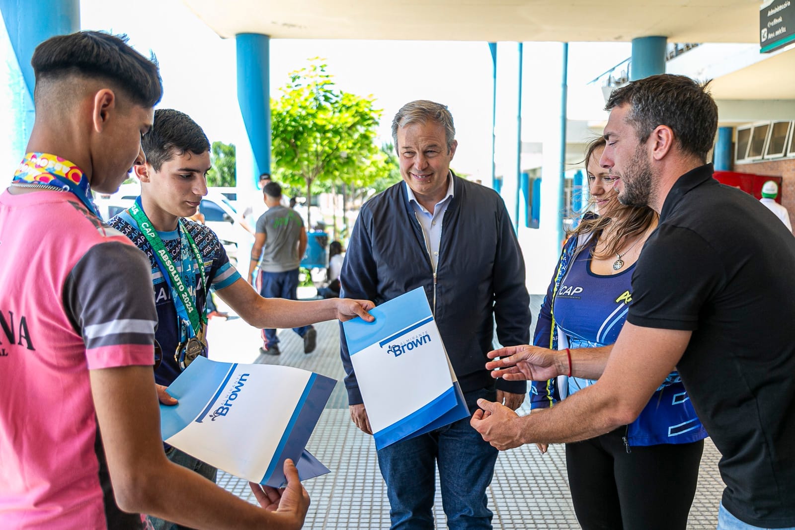 “En Almirante Brown siempre apoyamos al deporte como herramienta de inclusión e igualdad de oportunidades. Por eso, hoy compartimos un emotivo encuentro con Thomas Pintos y Alejo Uriel Castro, dos campeones nacionales de patín que se entrenan en nuestros clubes de barrio y que se están preparando para afrontar nuevas competencias”, remarcó Mariano Cascallares.