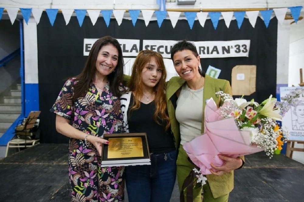 La intendenta de Quilmes, Mayra Mendoza, estuvo presente este jueves junto a la comunidad educativa de la Escuela de Educación Secundaria Nº 33, ubicada en la calle Pringles 1621, en Ezpeleta, que luego de una votación entre sus integrantes, eligió para denominar al establecimiento el nombre “María Eva Duarte de Perón”.