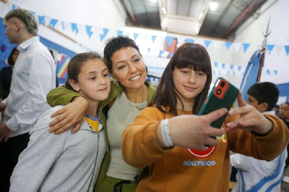 “Sepan que no impusimos el nombre María Eva Duarte de Perón a una escuela, sino que lo eligió democráticamente la comunidad educativa. No es un capricho de un grupo de funcionarios que quieren ‘peronizar’ el mundo. No, esto fue una definición y una votación de quienes forman parte de esta escuela. Nosotros y nosotras somos invitados y agradezco que nos permitan compartir”, resaltó Mayra.