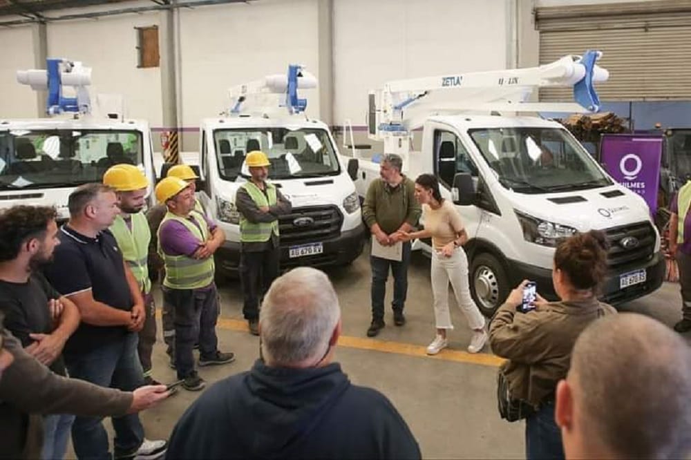 La intendenta de Quilmes, Mayra Mendoza, encabezó este martes la presentación de 5 nuevas camionetas destinadas al área de Alumbrado Público, en un acto que se llevó adelante en la Regional Quilmes Oeste, ubicada en calle 392 Nº 1859.