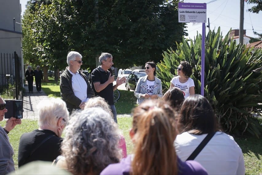 En este marco, Gabriel Laporte, hermano de Luis, indicó: “Hace 61 años que vivo en el barrio. Cuando mi hermano desapareció tenía 26 y yo 15. Hoy es un día muy especial y con muchas emociones. Y después de tantos años de vivir acá, de transitar este barrio y la historia, gracias a las políticas de Estado, en este caso del Municipio y gracias Mayra y al Concejo Deliberante de Quilmes, sacaron esta ordenanza que visibiliza a las víctimas del terrorismo de Estado”, y agregó que además de su hermano, tres personas más fueron desaparecidas en el barrio, en un lapso de dos meses.