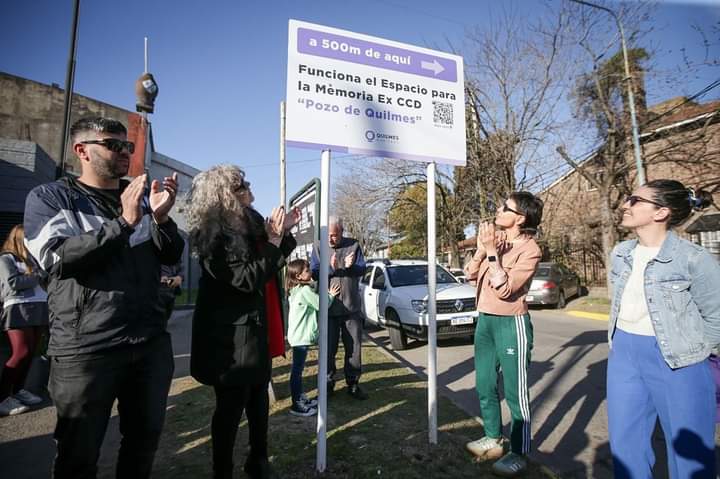 La intendenta de Quilmes, Mayra Mendoza, participó este jueves del acto de señalización que indica la distancia que hay entre el Club Argentino de Quilmes (Cevallos y Alsina) y el Espacio de Memoria del Ex Centro Clandestino de Detención conocido como Pozo de Quilmes (Garibaldi y Allison Bell), en el marco del programa municipal “Esquinas con Memoria” y del Día Internacional de las Víctimas de Desapariciones Forzadas, que se conmemora cada 30 de agosto.