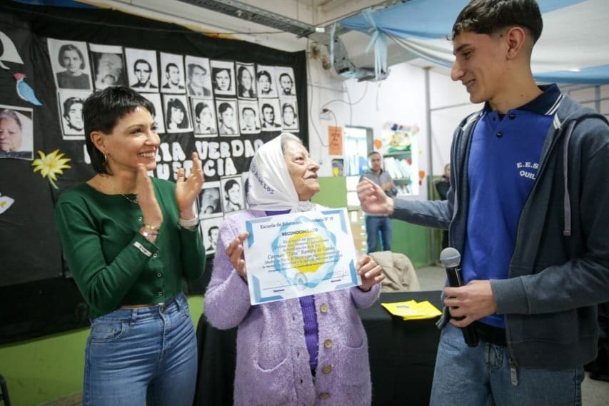 Por su parte, Carmen “Tota” Ramiro de Guede, Madre de Plaza de Mayo, especialmente invitada a ser parte del encuentro, dejó un mensaje para los y las jóvenes: “La dictadura nos arruinó la vida a todos los argentinos, no solamente a los que tuvimos desaparecidos, a todos. Y nos pudimos recuperar. Yo siempre digo que tenemos un pueblo maravilloso, que se cae, se levanta, se sacude la tierra, se limpia las heridas y sigue. Y creo que ustedes son los que van a hacer eso, los que ya lo están haciendo, porque conocen la historia argentina, saben lo que pasó, aunque se lo quieran ocultar”.