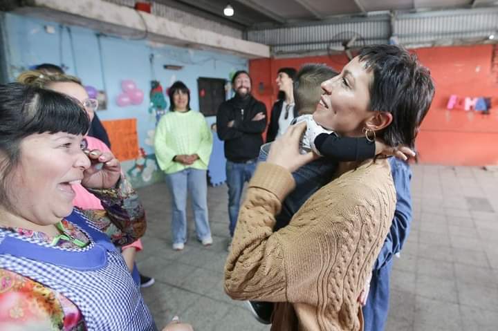 Por su parte, la encargada de la Casa del Niño, María Esther Otrera, destacó: “Acá hay muchas funciones para el barrio y para la sociedad, nosotros tenemos esta contención de niños con aprendizaje de jardín y preescolar, hacemos apoyo escolar, se entregan viandas, módulos, hacemos talleres con los papás, vienen del Municipio a hacer talleres de los chicos con TEA. En los más de 30 años que estoy en este lugar es la primera vez que recibo a una persona como Intendenta. Estoy emocionada porque creo que tenía que ser una mujer para poder venir a visitar este lugar. Estoy contentísima”.