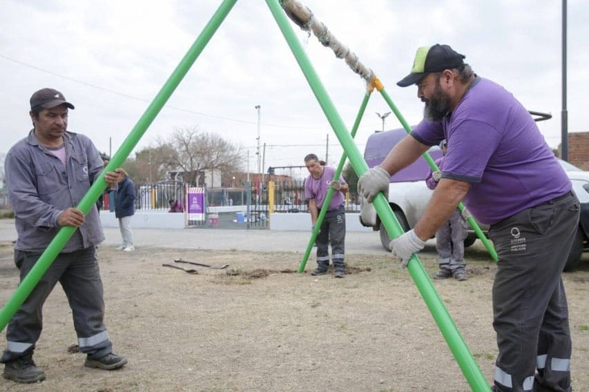 Las labores estuvieron a cargo de trabajadores de la Secretaría de Servicios Públicos, y el titular del área, Sebastián García, expresó: “Esto se enmarca en las tareas de renovación y cuidado de los espacios públicos que lleva adelante la gestión de la intendenta Mayra Mendoza, y que incluye la renovación y colocación de nuevos juegos en las plazas, tanto acá como en la Mariano Moreno, en el sur de la ciudad; Santo Domingo, en Ezpeleta Oeste, y Héroes de Malvinas, en la misma localidad, en este caso, en conjunto con la Fundación Banco Provincia”.