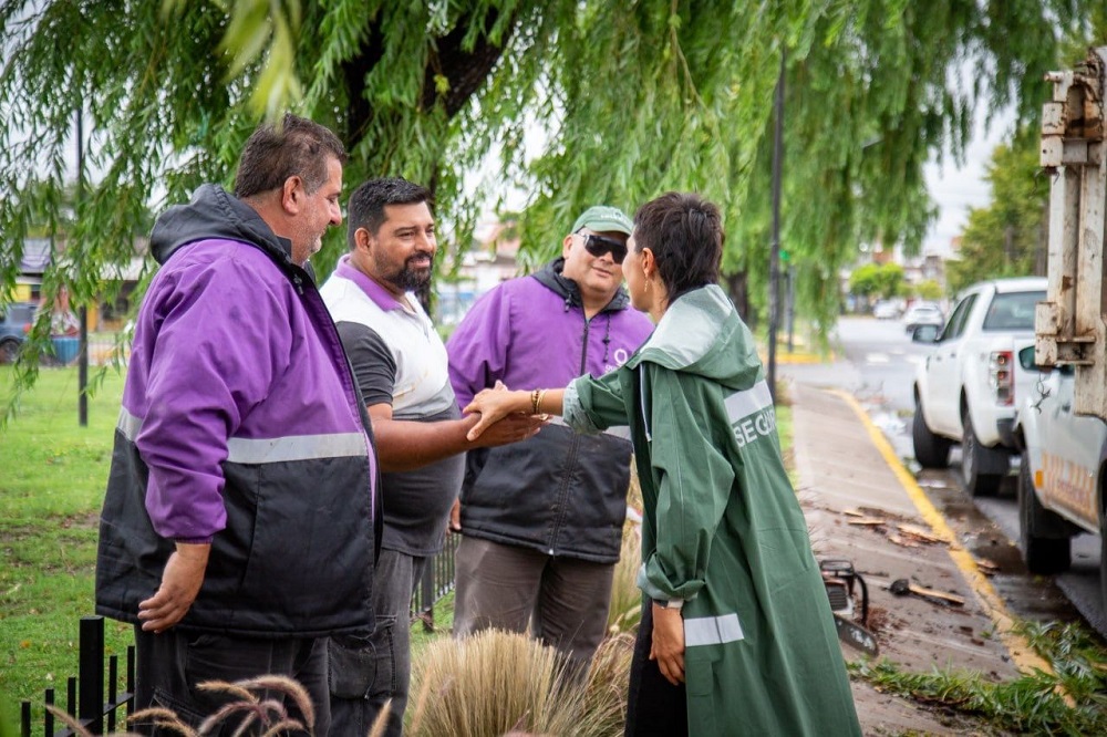 A su vez, la jefa Comunal destacó los trabajos previos a la tormenta con el objetivo de mitigar sus efectos, y que incluyeron: la limpieza de sumideros y basurales, además del levantamiento de ramas, y el trabajo en calles anegadas, a través del área de Aguas y Cloacas, las bases operativas y camiones desobstructores, respectivamente.