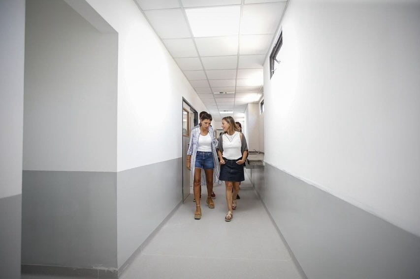 También se están colocando piso vinílico de alto tránsito con zócalo sanitario en habitaciones, baños y corredores, y se realizará la refacción del tendido pluvial existente y de la instalación eléctrica y de datos.