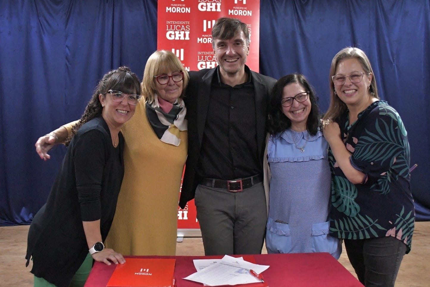 El encuentro estuvo encabezado por el intendente de Morón Lucas Ghi, junto a la secretaria de Educación local, María José Peteira, la presidenta del Consejo Escolar, Mabel Mesa, y el director del SAE, Leandro Vita, entre otros y otras.