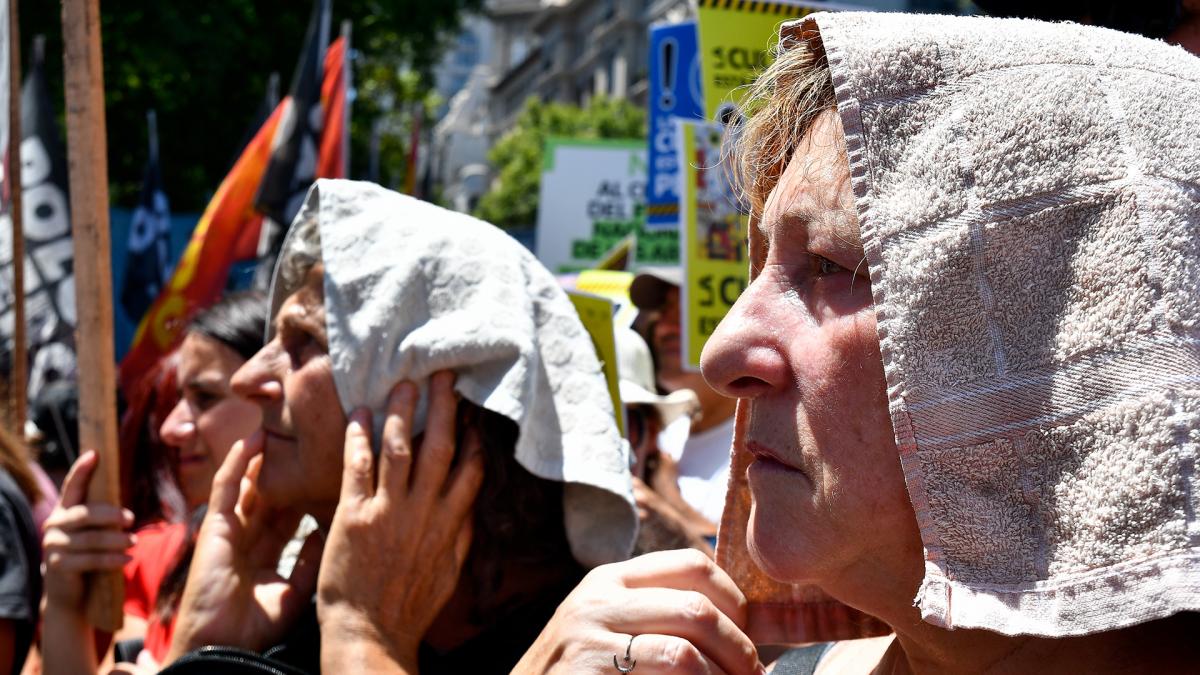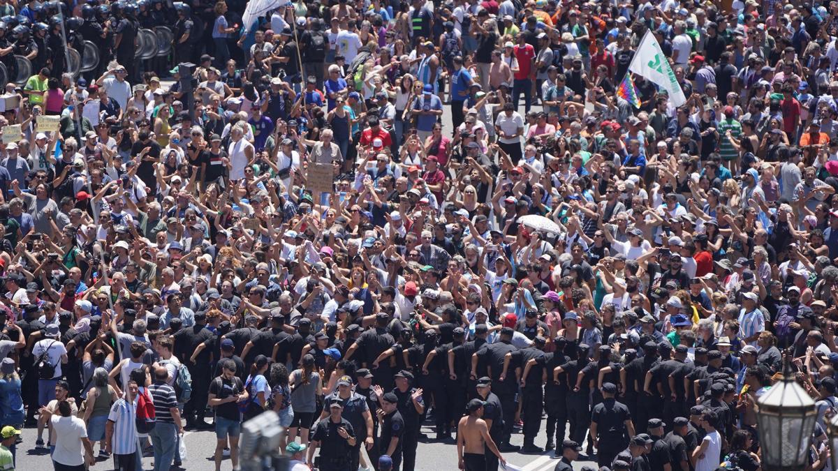Organizaciones gremiales y sociales enroladas en la CGT, las dos CTA y la Unidad Piquetera (UP) fueron protagonistas de una multitudinaria protesta frente al Congreso de la Nación y a lo largo de la avenida de Mayo y calles adyacentes, con cortes parciales para el tránsito vehicular, en el marco del paro y movilización convocado por la CGT, que comenzó a las 12.