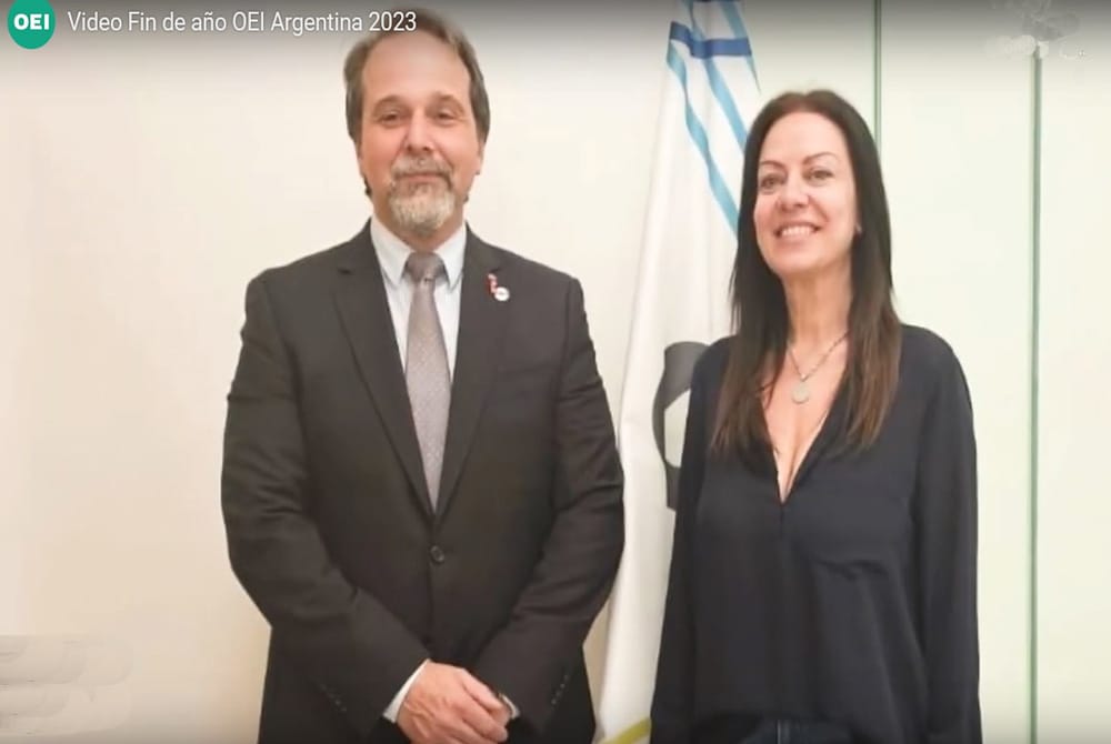 La ministra incluso participó del brindis de la OEI el pasado 3 de mayo, donde posó junto al director del organismo, Luis Scasso.