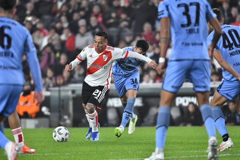 Con Claudio Echeverri como conductor esta vez, bien apuntalado por Esequiel Barco, sumado al desequilibrio que generó el tándem Agustín Sant’Anna y Pablo Solari por el flanco derecho, River inclinó el partido hacia el arco de Nahuel Losada.