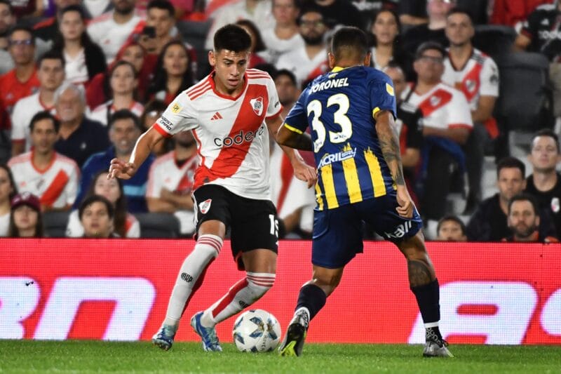 A los 13 minutos, Rosario Central sorprendió a River con un bombazo de Giaccone que se coló por el segundo palo, sin posibilidades para Franco Armani ante la mirada de la defensa del local. Este fue el primer gol del cordobés en el campeonato con la camiseta del Canalla en apenas tres partidos disputados.