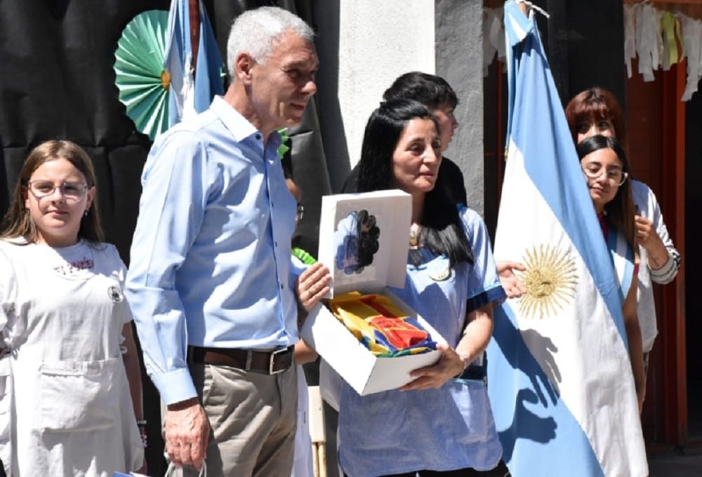 En el marco de los festejos, el Municipio entregó como obsequio a la comunidad educativa una nueva Bandera de Berisso.