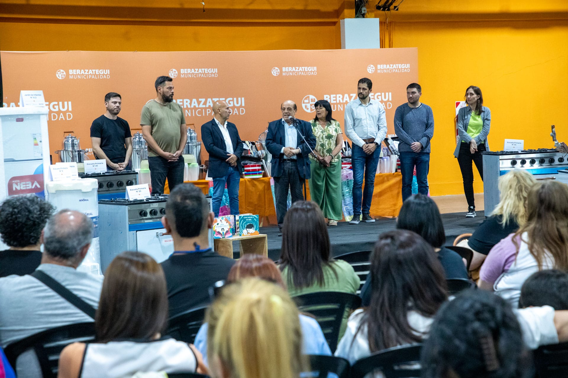 Se realizó la entrega de equipamiento y elementos de vajilla para 52 Jardines de Infantes y diez Escuelas públicas de Berazategui (ocho Primarias, una Secundaria y la Especial N° 501). El acto fue encabezado por el intendente Juan José Mussi, ante docentes y directivos. Además, los Jardines recibieron un set de 4 libros con 2 cuentos cada uno, publicados por EdiBer, la editorial municipal.