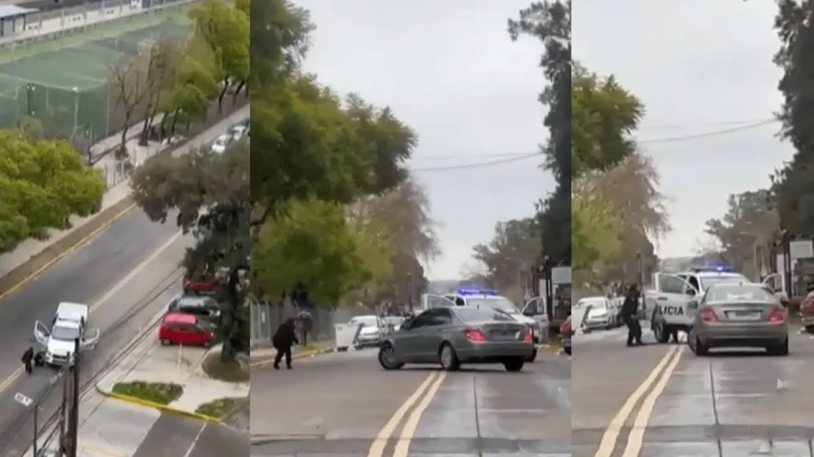 En otra grabación, tomada desde un piso alto de un edificio, se ve que el tiroteo ocurre frente a un complejo de canchas de fútbol 5 que en ese momento estaban vacías. Allí también se percibe una parte de la seguidilla de detonaciones mientras dos policías de cubren. “¿Se fue?”, pregunta una cuando los ladrones dejan de tirar.