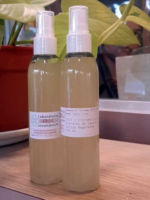 La fabricación del repelente no fue fácil debido a la escasez del ingrediente básico de los productos comerciales, la Dietil-meta-toluamida (DEET), un insumo importado que no estará disponible en el país hasta finales de mayo y que ya está reservado por los principales laboratorios. Ante esta situación, Jovanovich optó por utilizar diferentes ingredientes alternativos, como el aceite de citronela y otros aceites esenciales, para garantizar la efectividad del producto.