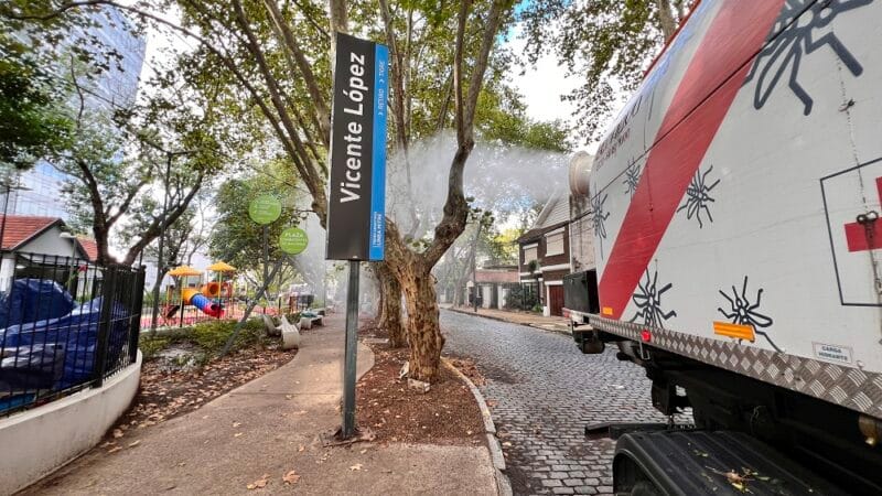 Cada semana se llevan a cabo jornadas de fumigación en todas las plazas de Vicente López ya que, debido a su vegetación, suelen ser el epicentro para los mosquitos que luego son portadores de dicha enfermedad.